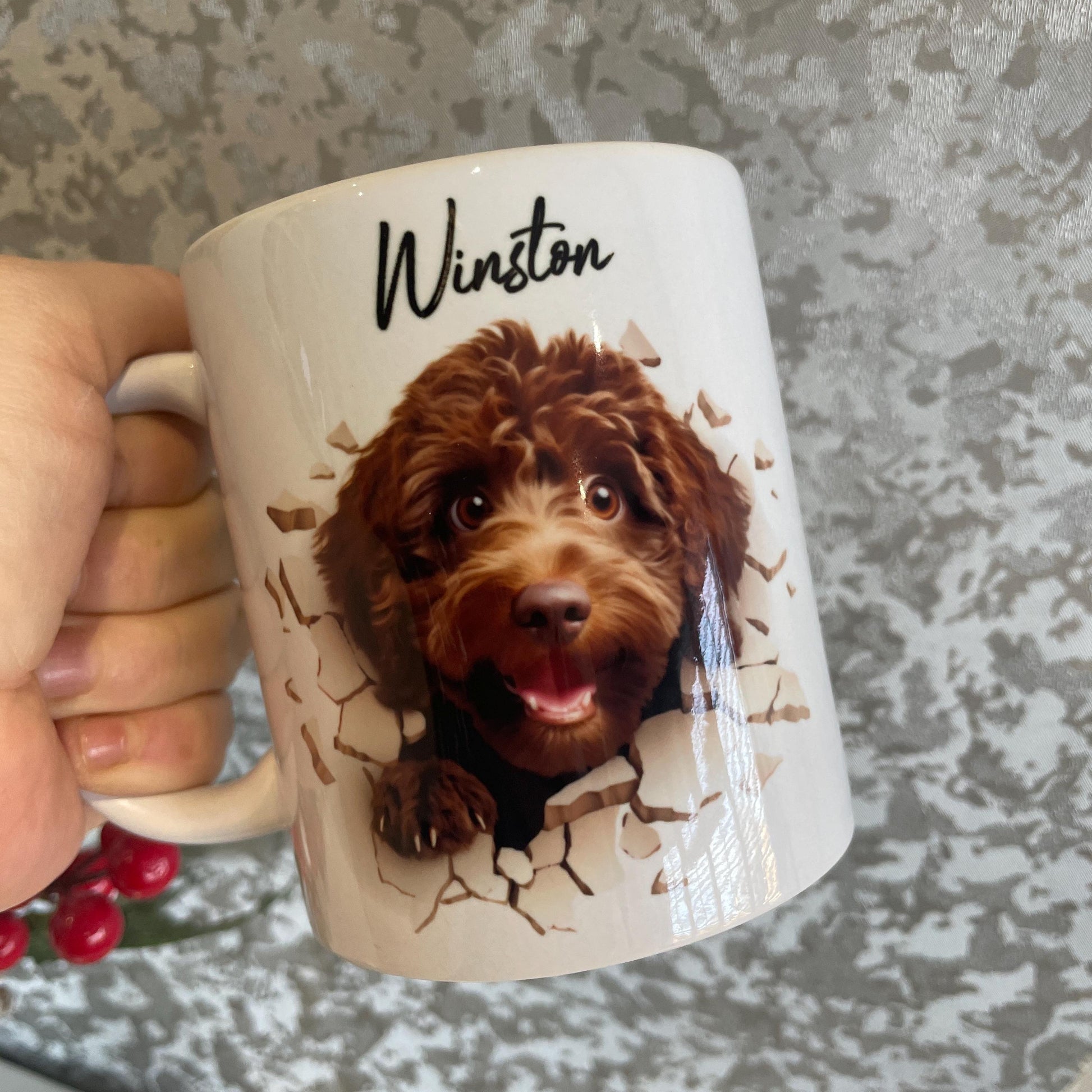 Enjoy the cosy charm of this 3D Cockapoo Hole In A Wall Mug, designed to celebrate the bond with your beloved pet. Ideal for coffee, tea, or hot chocolate, its generous capacity and ergonomic handle offer a comfortable experience for any relaxing moment. Each purchase includes a free coaster, and you can personalise the mug with a name at checkout. Made from durable, high-quality ceramic, it keeps drinks warm and is safe for both dishwasher and microwave use. A thoughtful gift choice for Valentine’s Day, anniversaries, birthdays, or Christmas. Capacity: 11oz, bright white glossy finish.