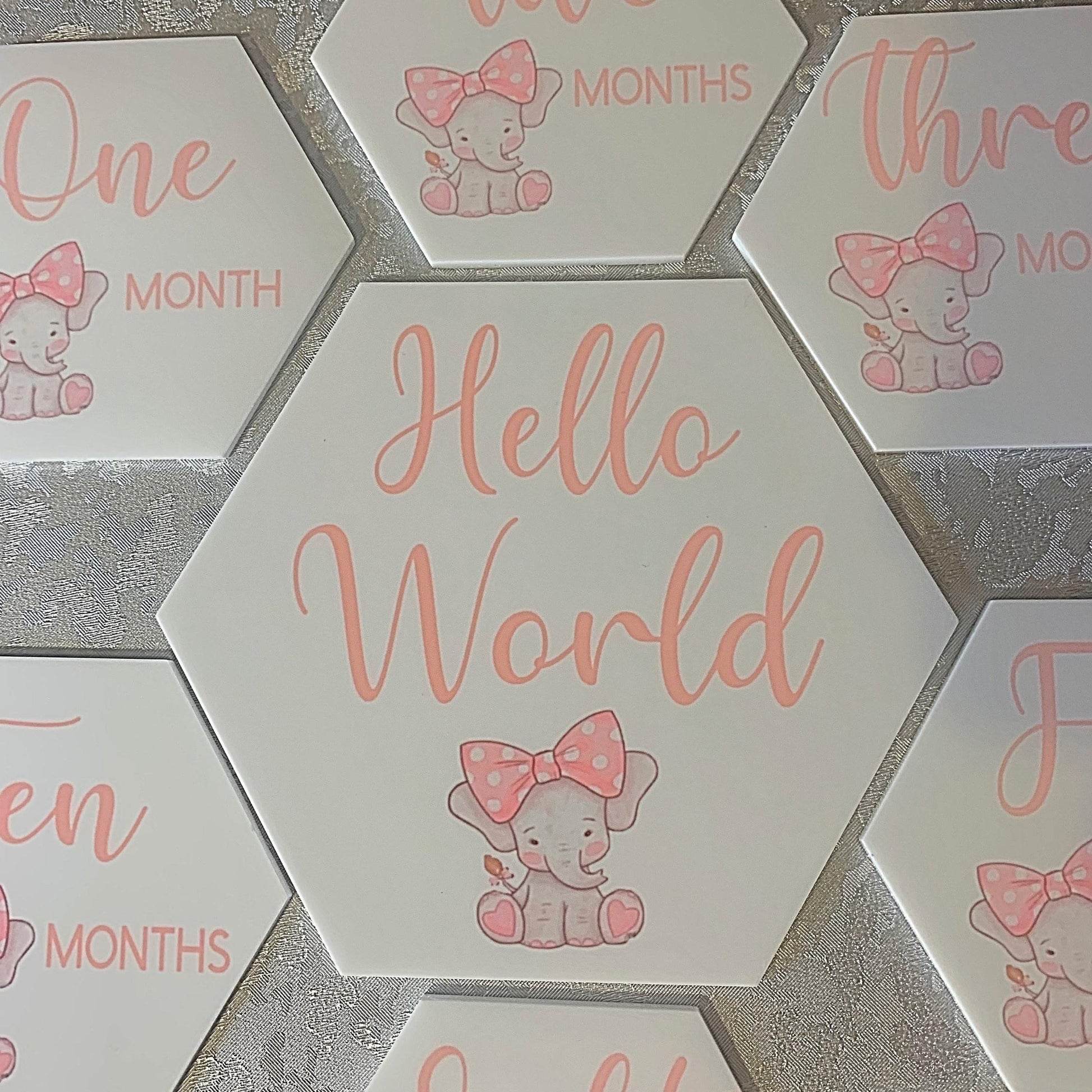 Document your baby’s development with these acrylic milestone discs, ideal as photo props for newborns or meaningful gifts for new parents. Crafted in hexagon shapes with charming pink, blue, or woodland rainbow animal designs, these discs help you track each month of your child’s first year with ease and elegance. Each set features "Hello world," weekly and monthly milestones through 12 months, plus a "Today I’m one" disc. For safety, these are photo props only and colours may slightly differ due to lighting variations.