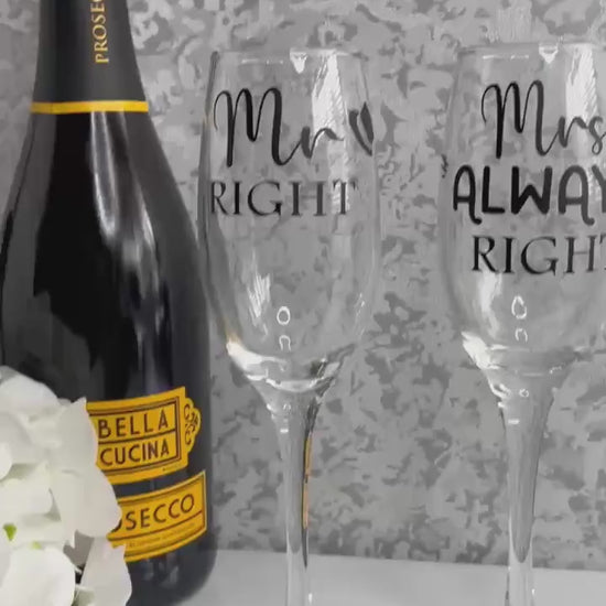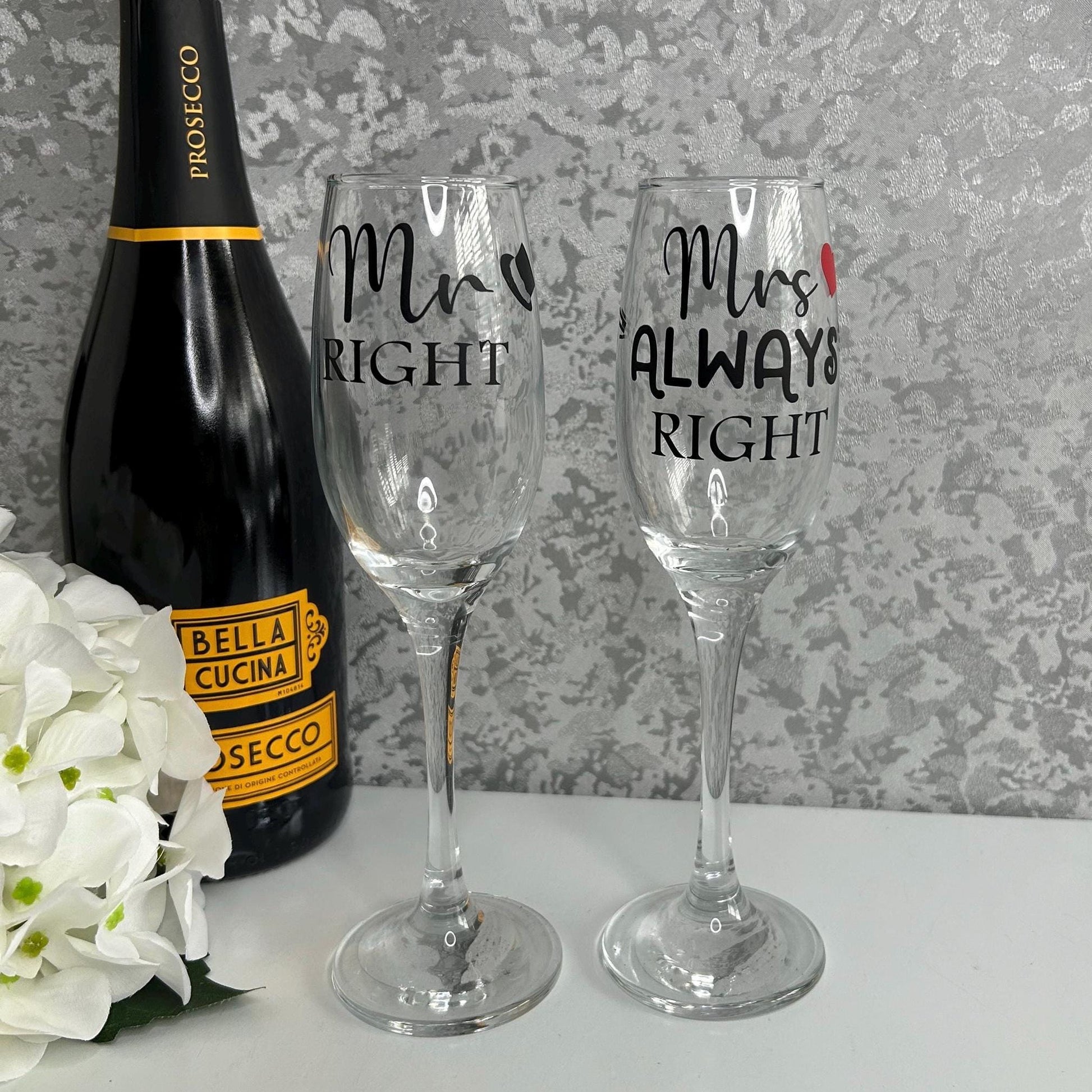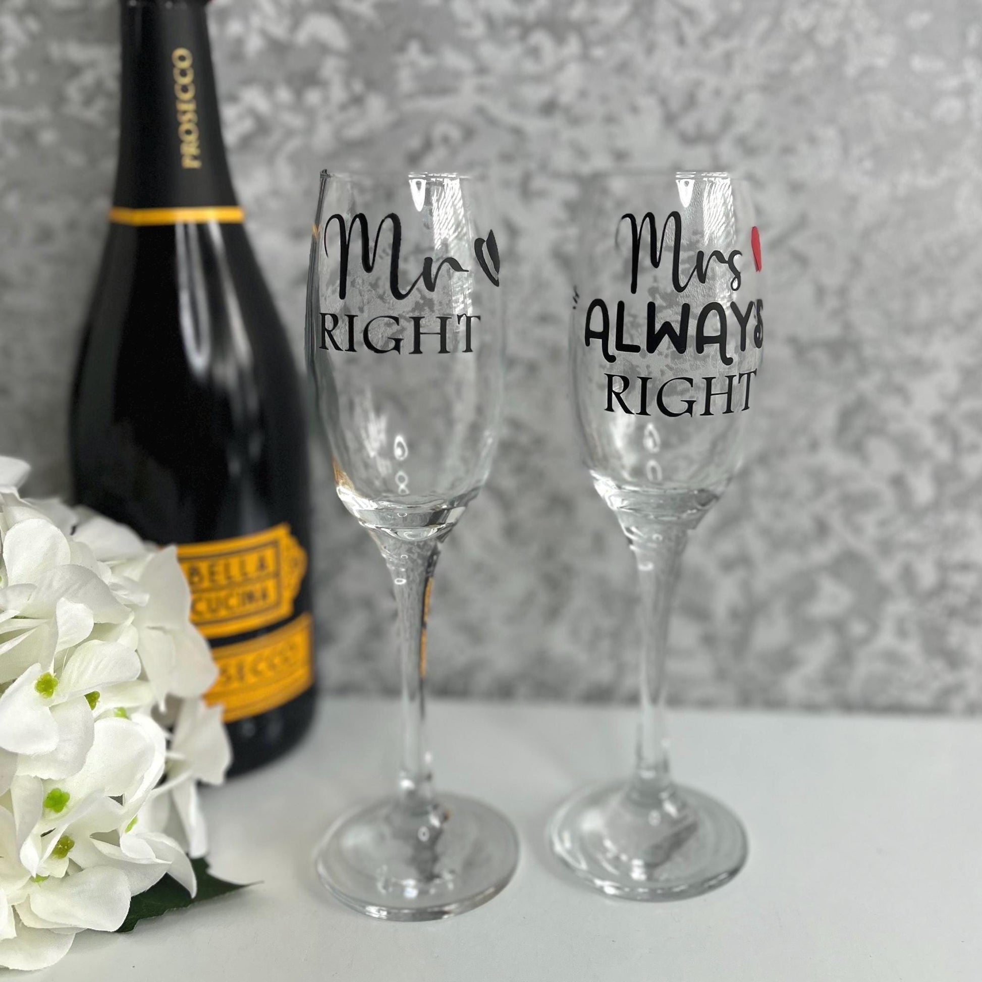 Set of 2 champagne flutes- Mr Right & Mrs Always Right