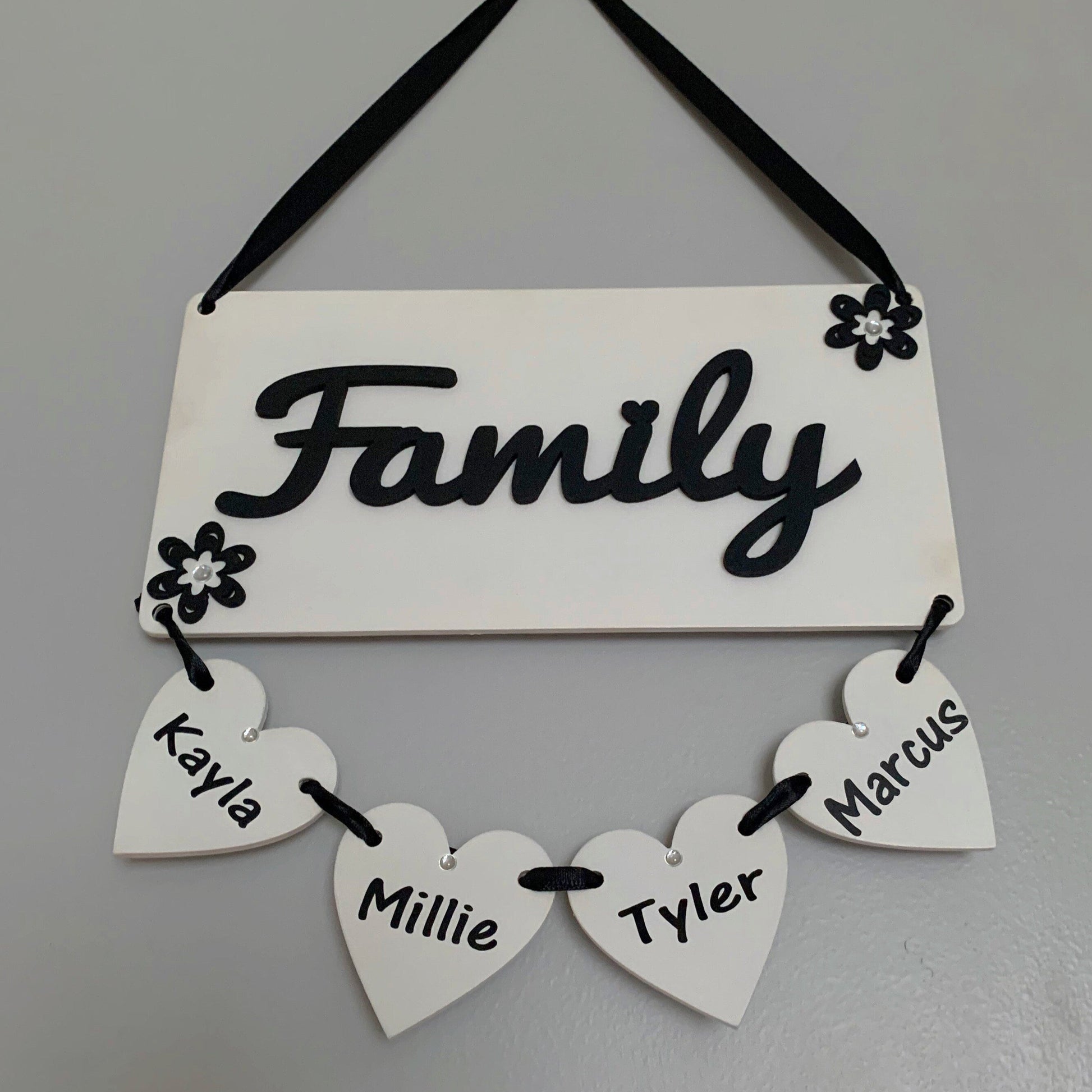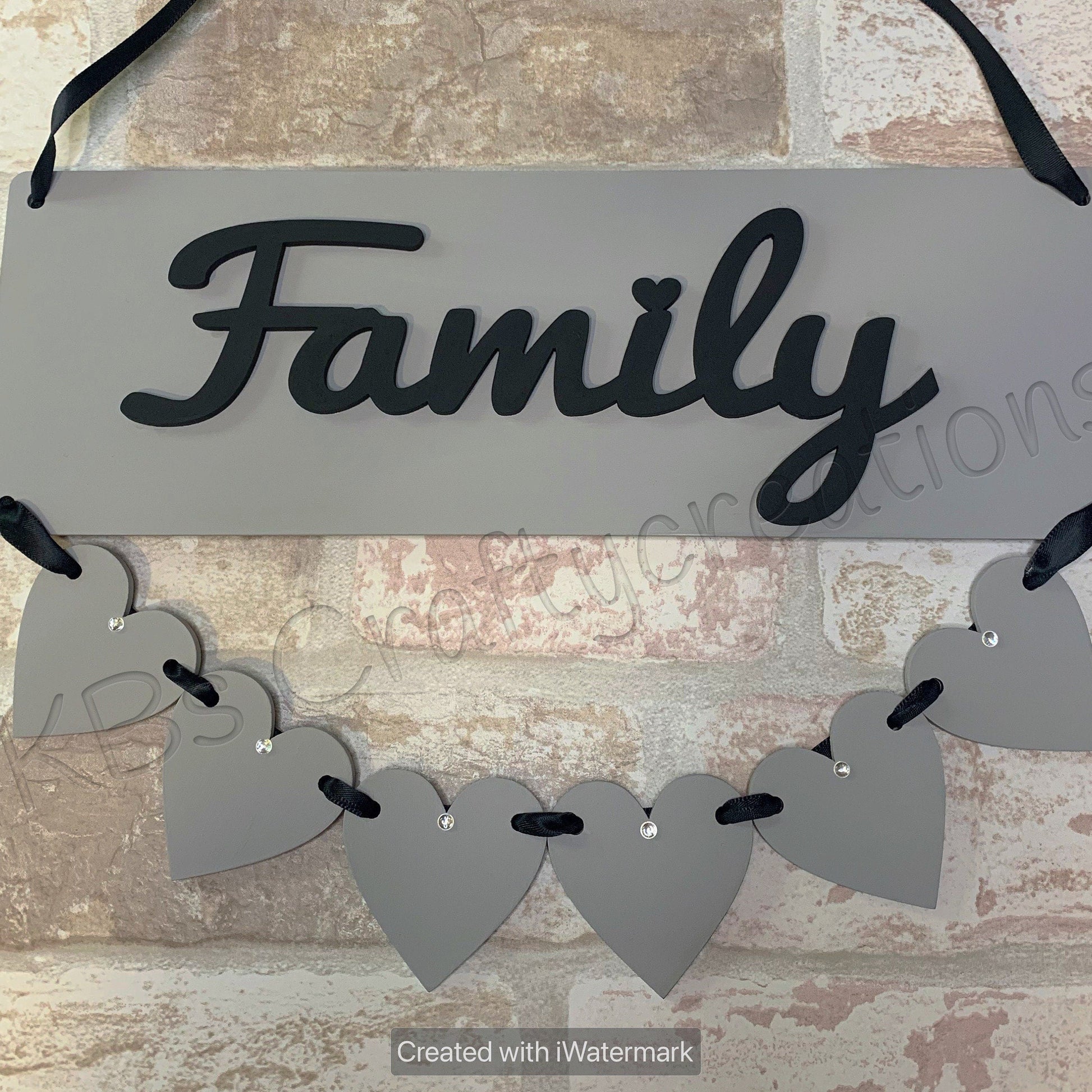 Smaller plaque can have up to 4 hanging hearts whilst the larger plaque up to 6 hanging hearts.