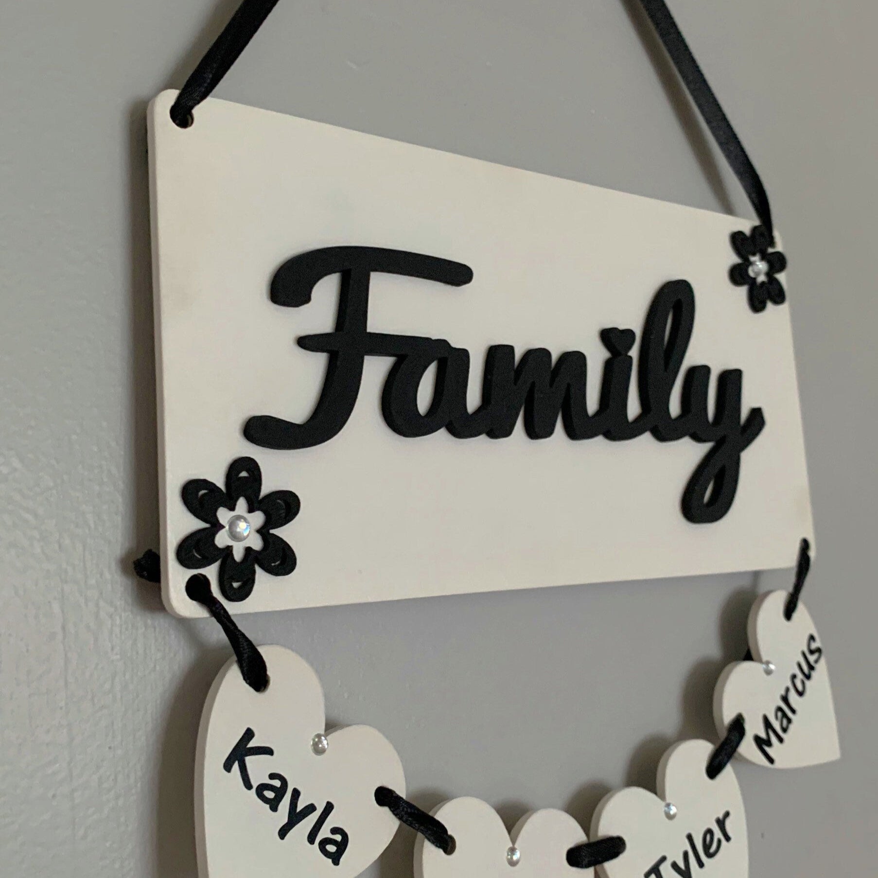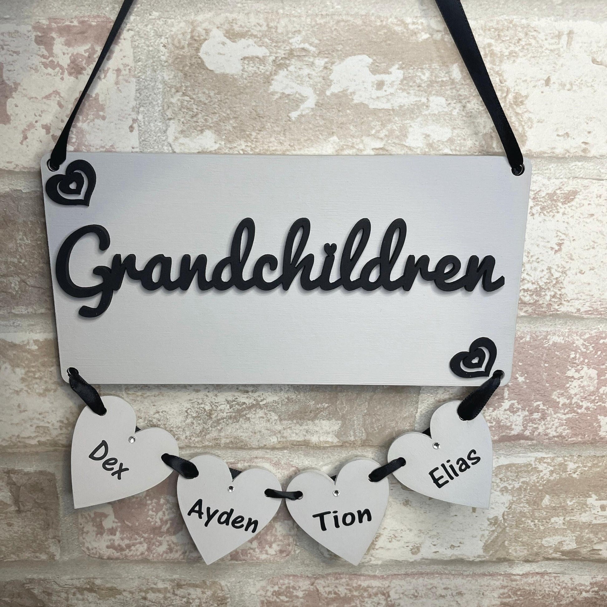 Personalised Family & Grandchildren Hanging Hearts Plaque