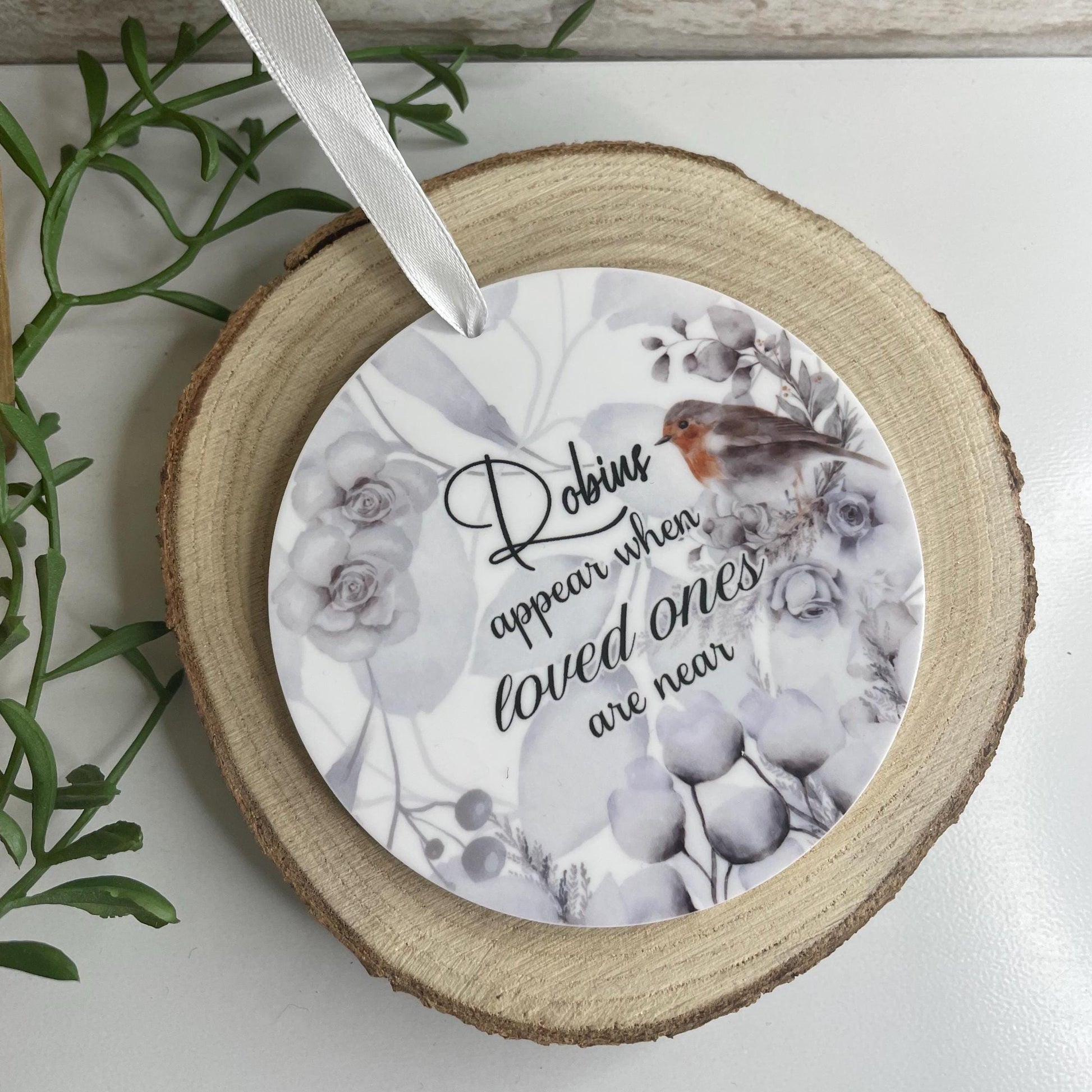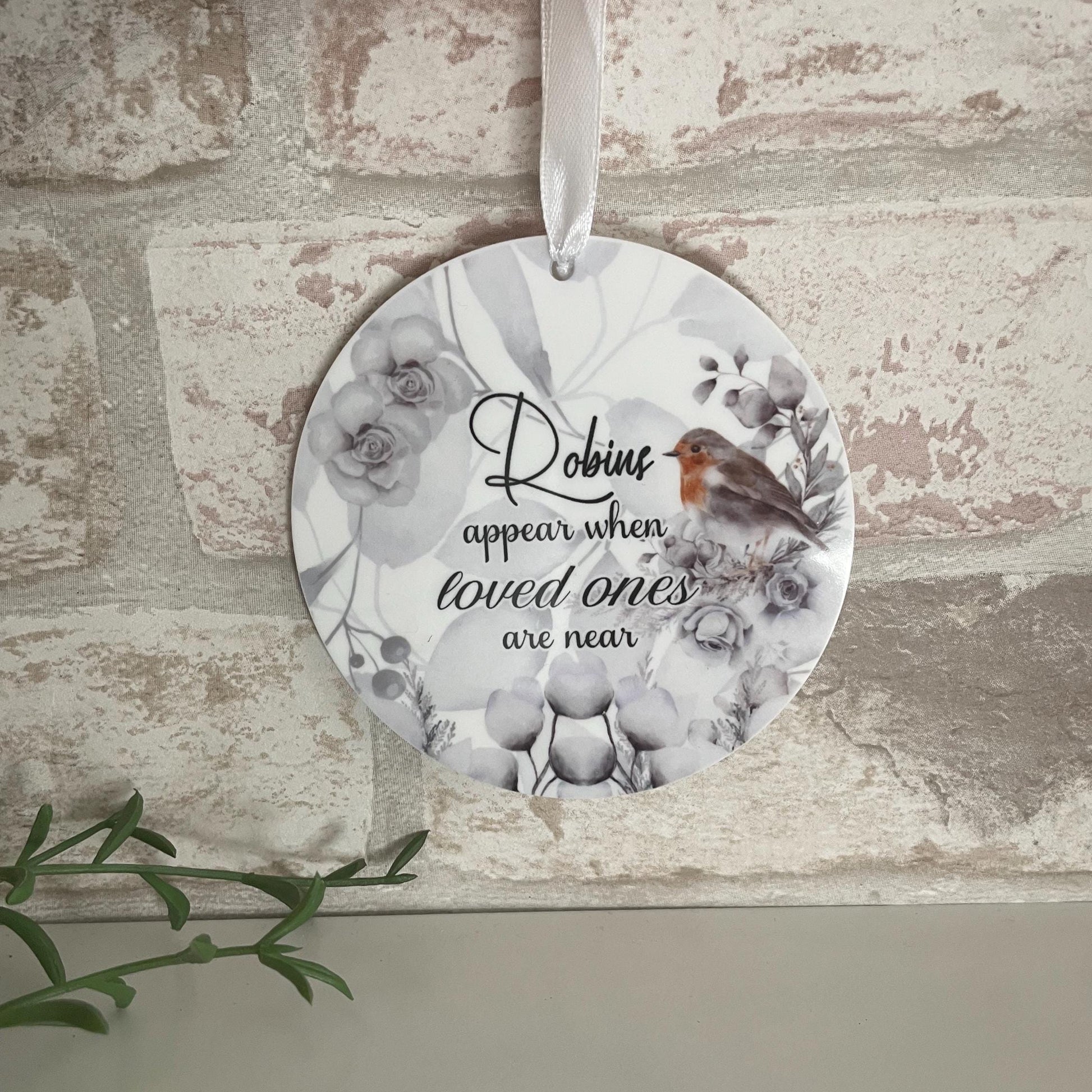 A beautiful memorial Robins Appear When Loved Ones Are Near hanging decoration.