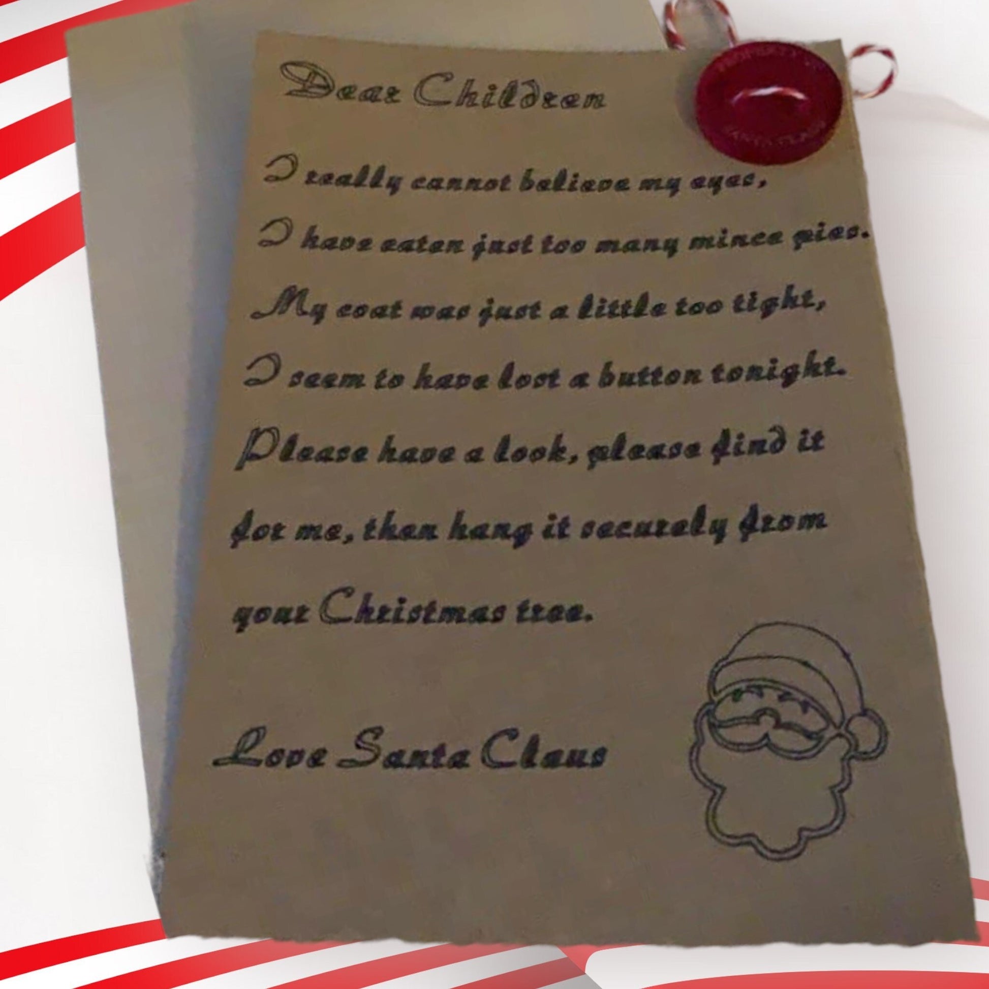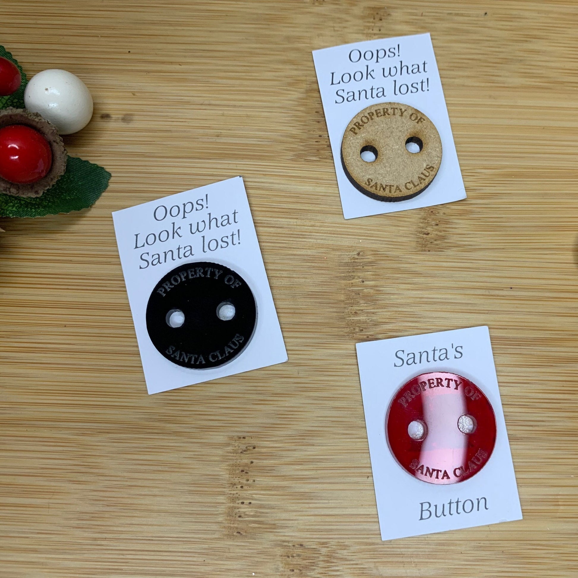 Santa’s Lost Button offers a wonderful way to sustain the enchantment of Christmas and reassure children that Santa truly visits their home. Ideal as a fun stocking filler, it features a charming poem about Santa’s missing button: "Dear Children, I really cannot believe my eyes, I have eaten just too many mince pies, My coat was just a little too tight, I seem to have lost a button tonight. Please have a look, please find it for me, then hang it securely from your Christmas tree. Love Santa Claus" On Christmas Eve, the button is hidden and left with Santa’s note for children to discover. Once found, the button is hung on the tree as a keepsake. Available in red or black, each 5cm button is stamped “Property of Santa Claus” and presented on an A6 Kraft card with the poem. Personalisation with your child’s name is available at checkout, adding a special touch to keep Christmas magic alive.